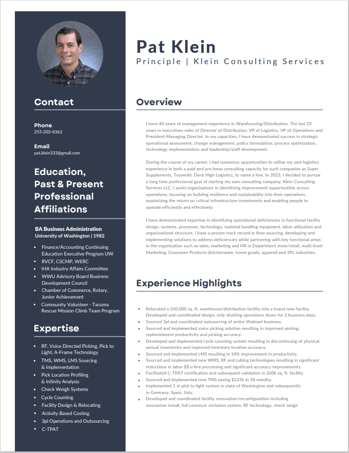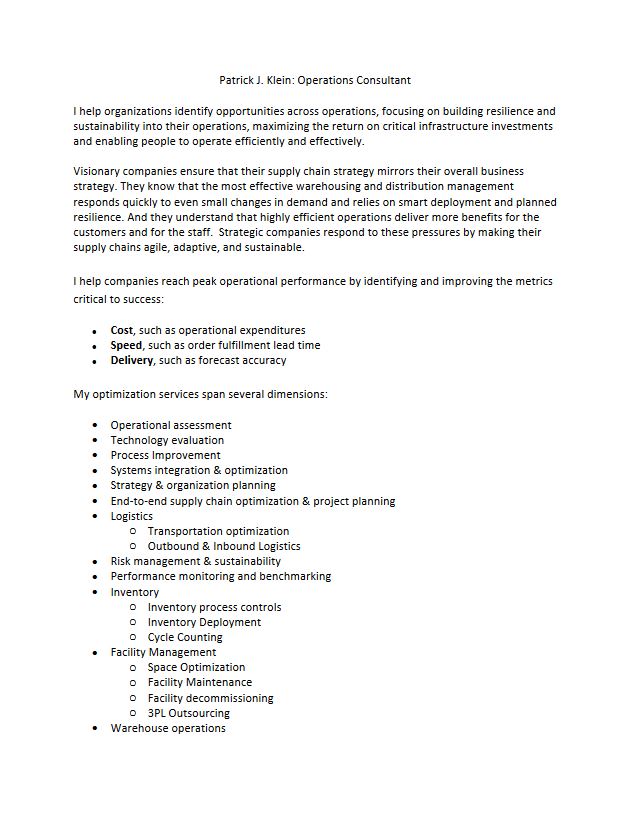 Click below for 1) Standard Resume, 2) Value Proposition & Statement of Services, and 3) Professional Bio.